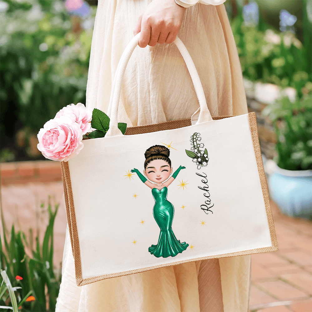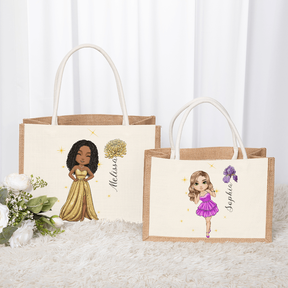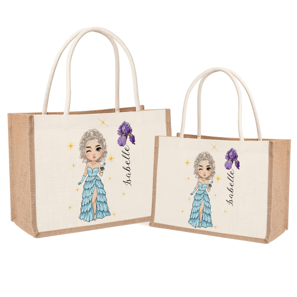 | Style | Personalized Cartoon Prom Queen Character Jute Bag |