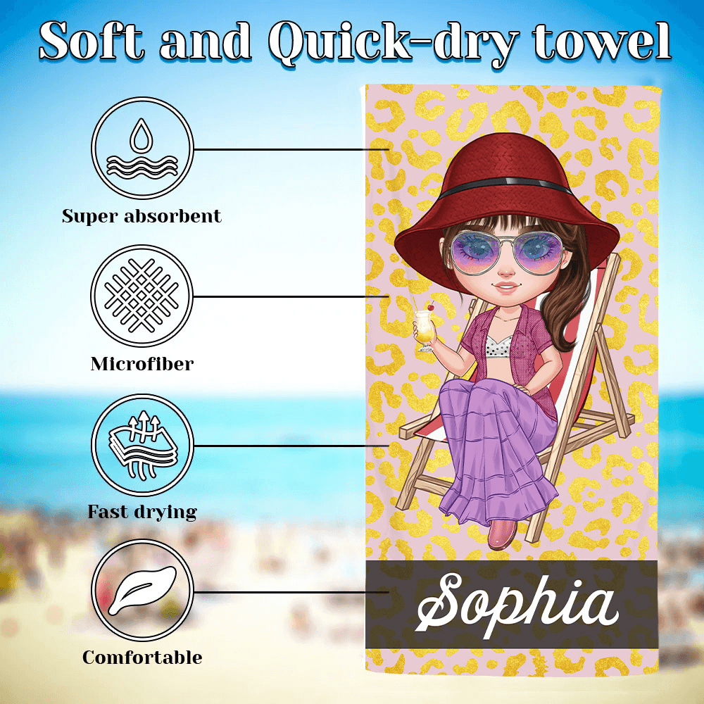 Fashion Character Design – Personalize your towel with a trendy cartoon figure that suits your personality, whether you're sporty, chic, or laid-back.