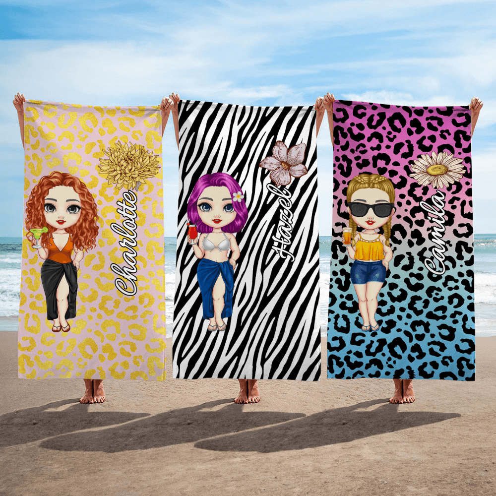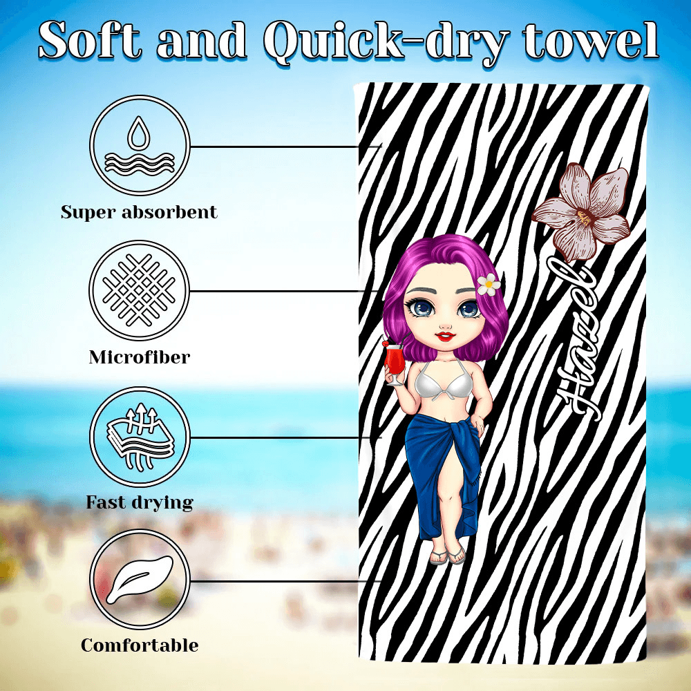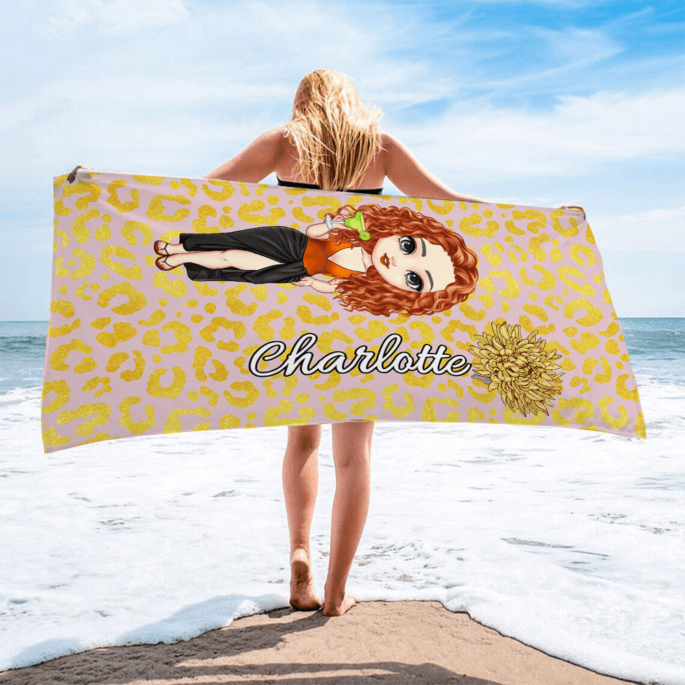 | Style | Personalized Fashion Cartoon Girl Beach Towel with Name and Birth Flower |