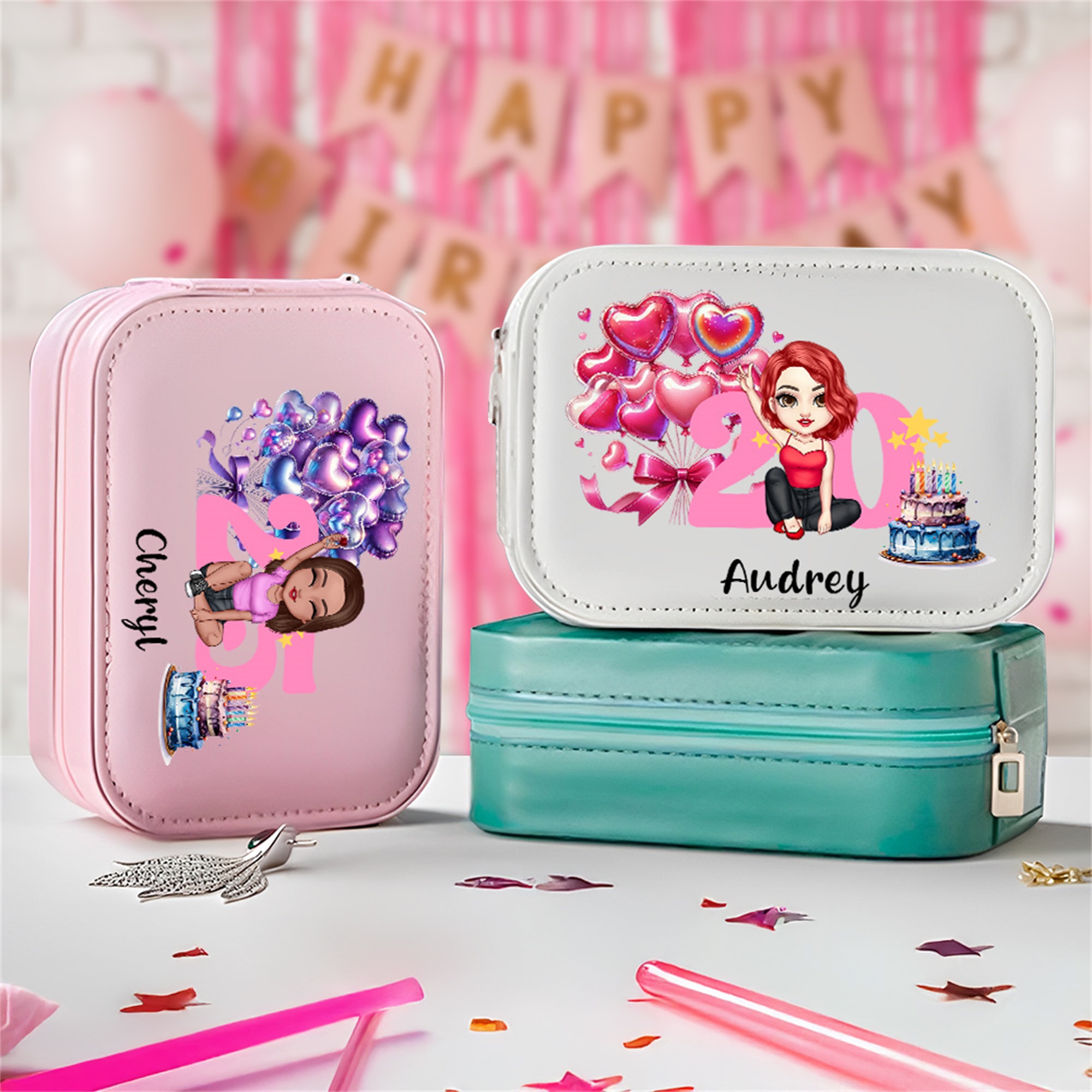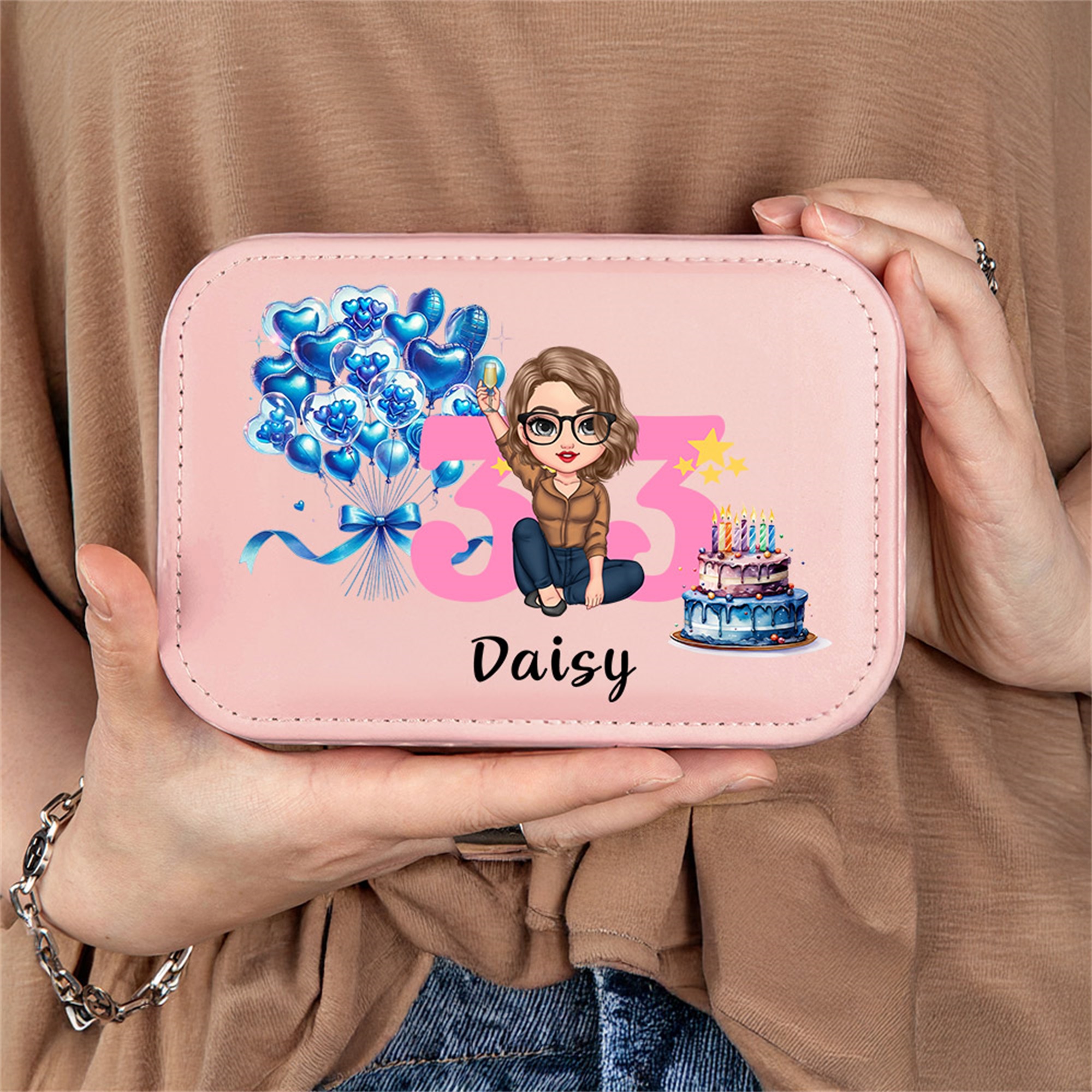 Customizable Design - This charming jewelry box features a personalized cartoon woman character, complete with her name and age. Create a unique design that reflects her style, making it a special keepsake.