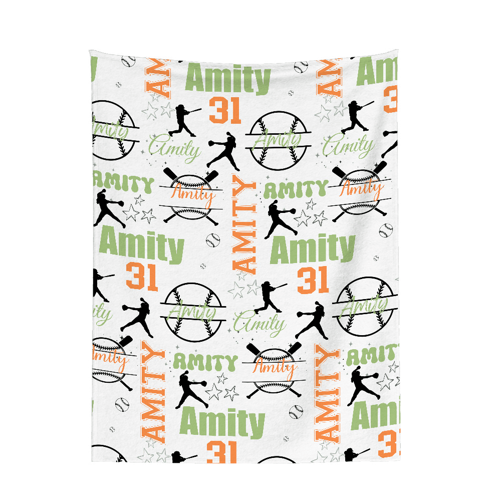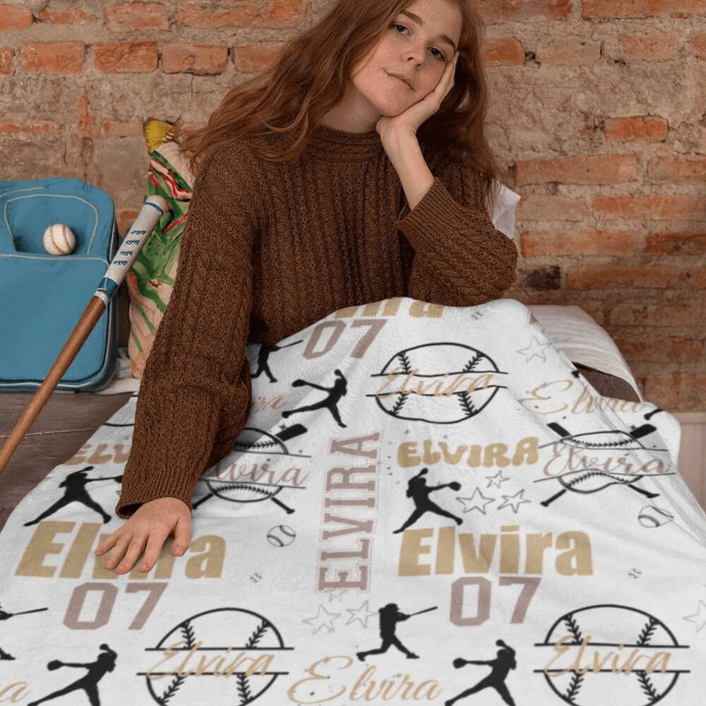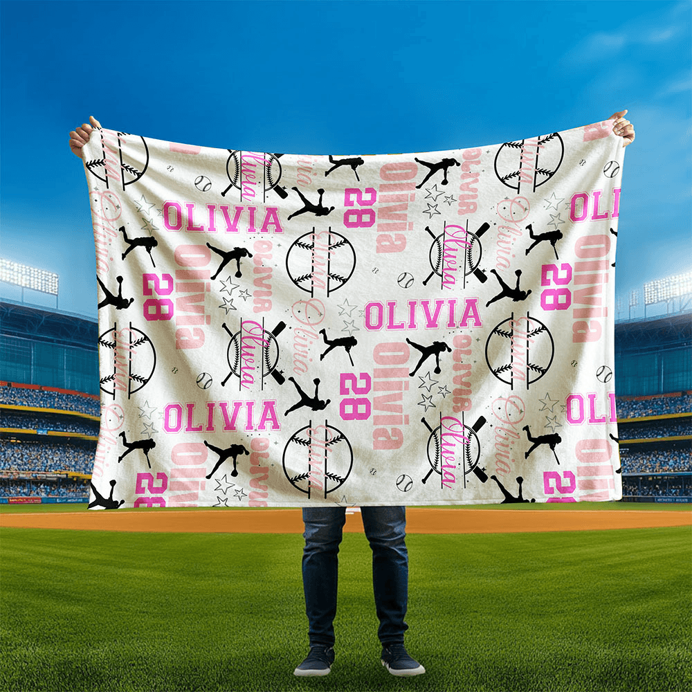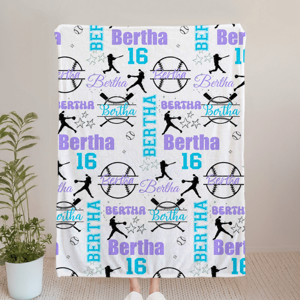 | Style | Personalized Name and Number Baseball Girl Silhouette Blanket |