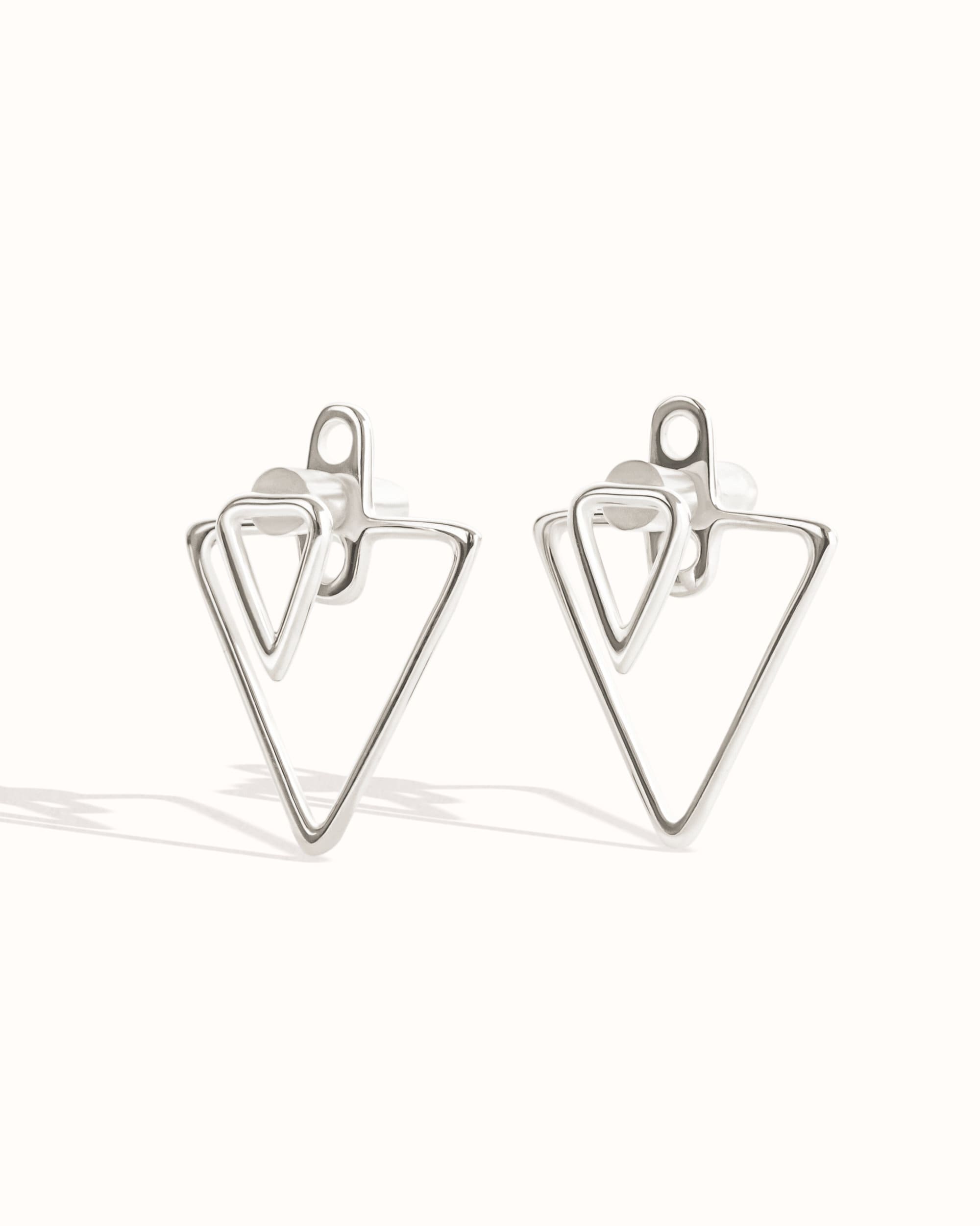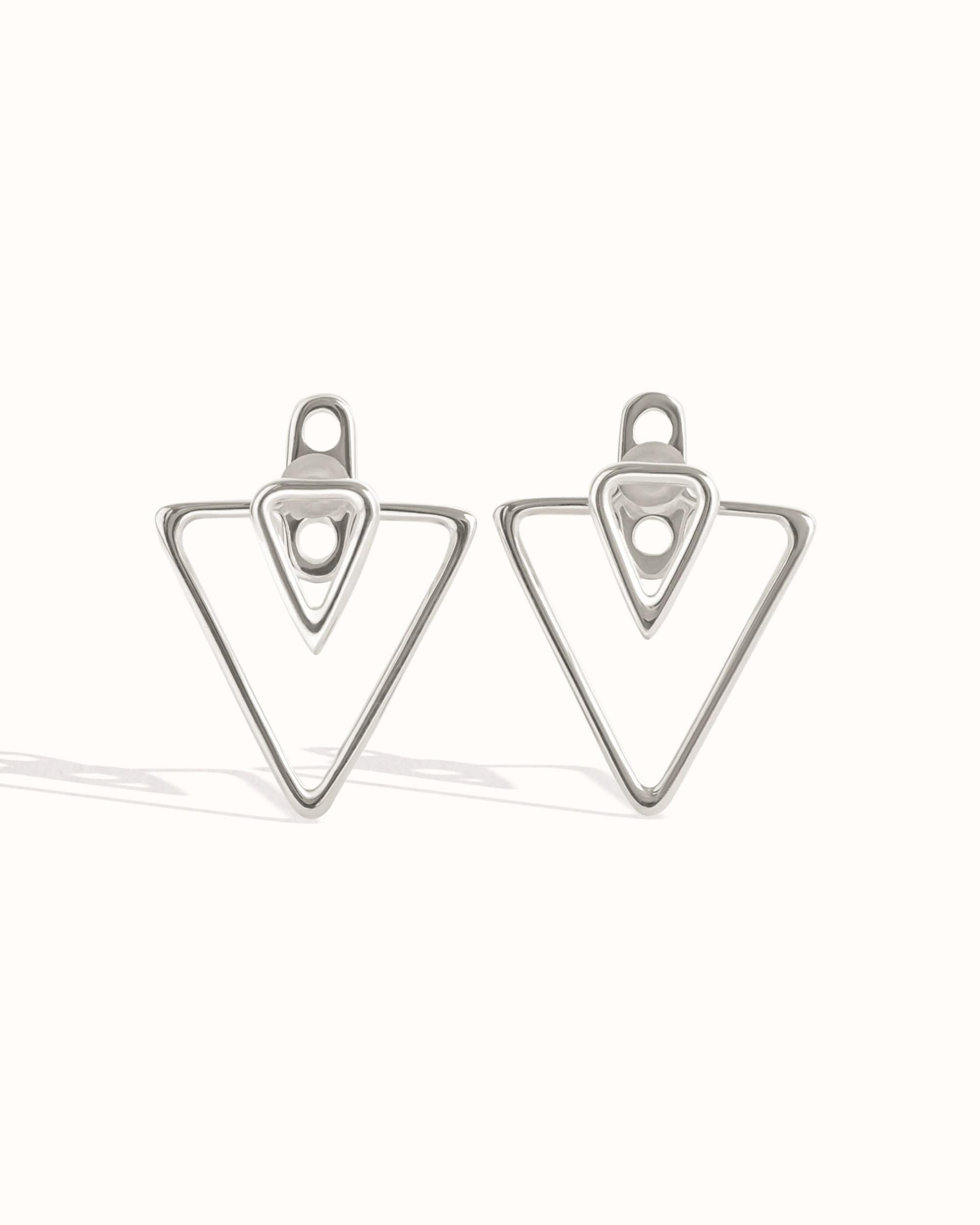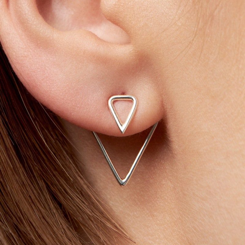 Simple and minimalistic Triangle ear jacket earrings for everyday use. Cast in solid Sterling Silver 925 finish with hand shiny polish. Triangle studs can be worn without the jacket.
